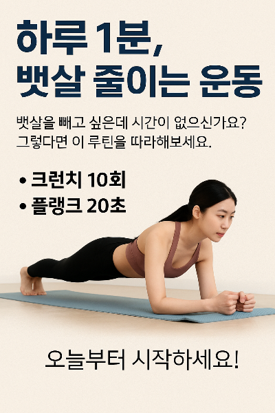 오늘부터 당장 크런치 10회 + 플랭크 20초 시작해 보세요.